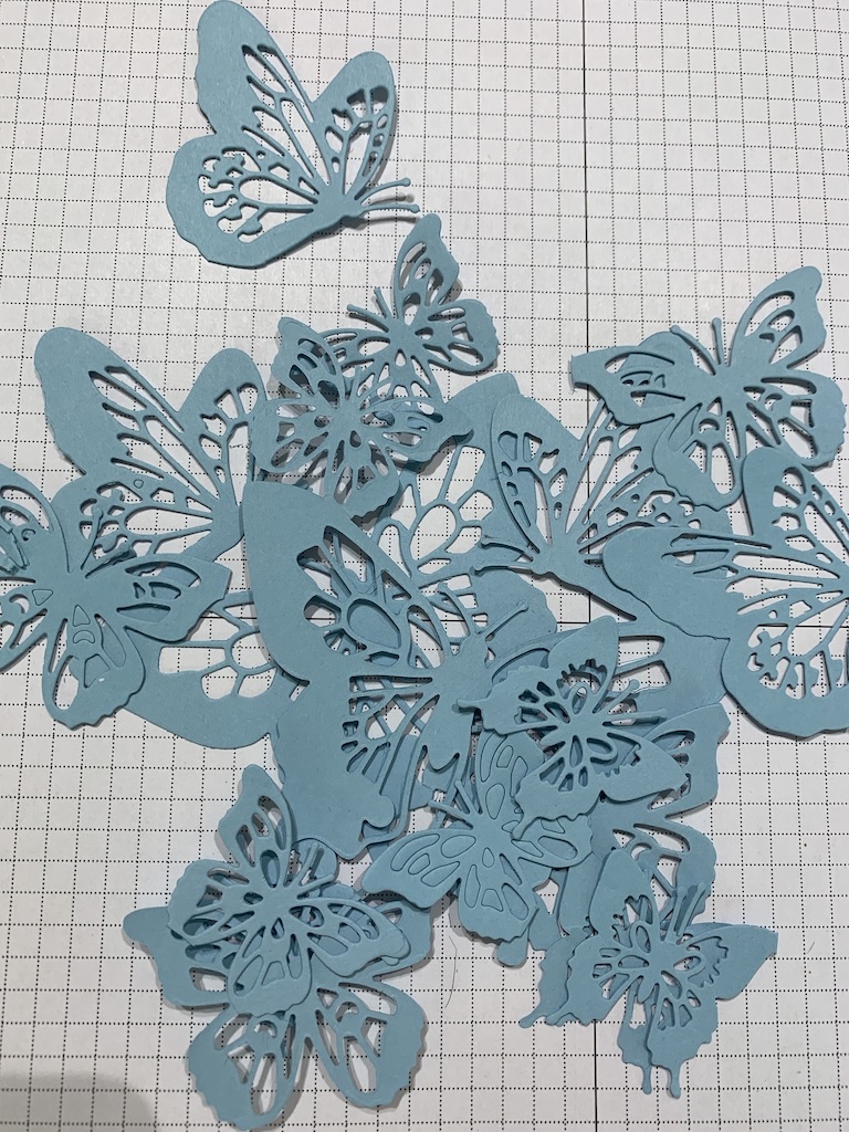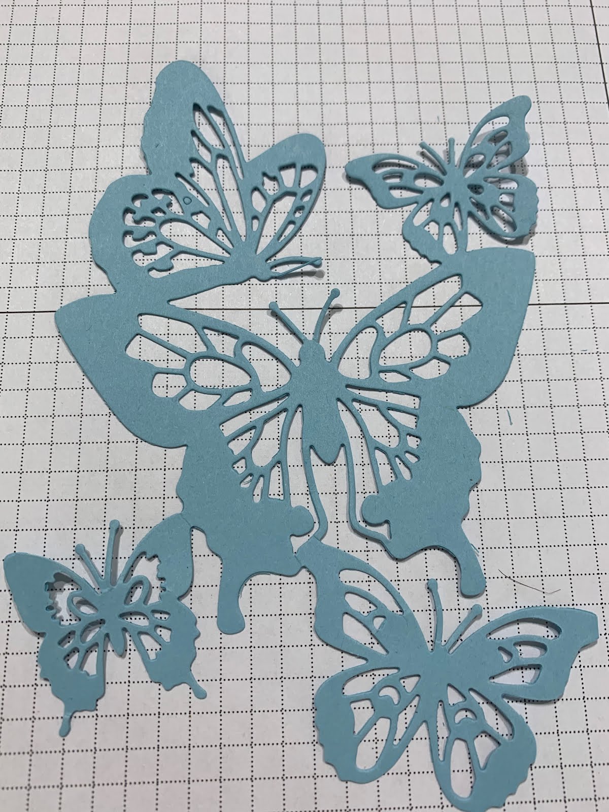 I simply cut a few of these and then snipped the butterfly’s apart to give myself a whole heap of them to use. They snip apart easily. I have quite a few customer thank you cards to make and I thought these butterfly’s would be perfect.