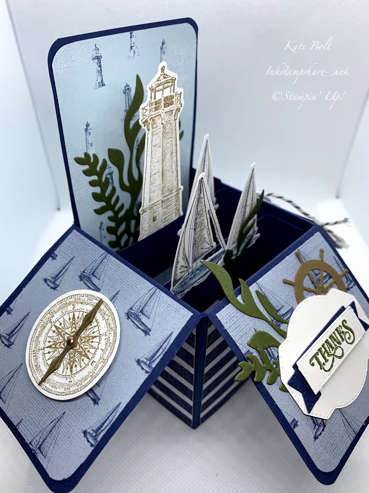 I have added the new Bakers Twine to the anchor and the “seaweed” to give texture, and the compass needle moves around with the help of the tiny brad.