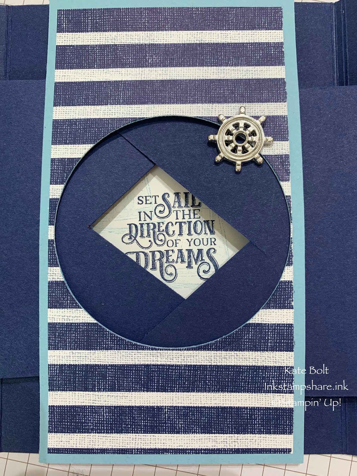 I wanted to make a masculine card so I reached for the new Come Sail Away Suite. It has gorgeous papers, stamps, and dies, plus cute little nautical embellishments and bakers twine. Lots of elements to play with! This one is a congratulations card. Just right for this time of the year with lots of exams going on but it would work beautifully for any occasion.